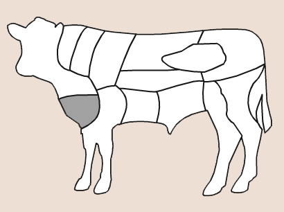 Del pecho se puede sacar la falda con hueso, si es tierna y con poca grasa se puede saborear a la parrilla, si no, su natural empleo es el puchero o la sopa. La falda también se encuentra sin hueso, también llamado Pechito de ternera deshuesado este corte es una exquisita pieza para ser puesta a la parrilla.