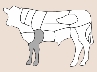 This cut extends from the scapular region to the brachial region, limited towards the dorsal portion by the chuck, towards the ventral area by the brisket and fore shin, towards the cranial portion by the neck, and caudally by the rib cage (plate). It consists of a large mass of muscles which lies dorsal and posterior of the elbow joint, ventral and posterior of the ridge of the scapula and is anterior to the 6th. rib. Medium tenderness, highly recommended for the grill. This cut weighs around 10.5 kg.